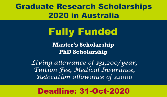 The University of Melbourne Graduate Research Scholarships will provide scholarships to study in Australia for free to all the Domestic & Internationa students. No of Scholarships will be 600.- Full fee offset for up to two years for students undertaking a Masters by Research degree or up to four years for students undertaking a doctoral degree.